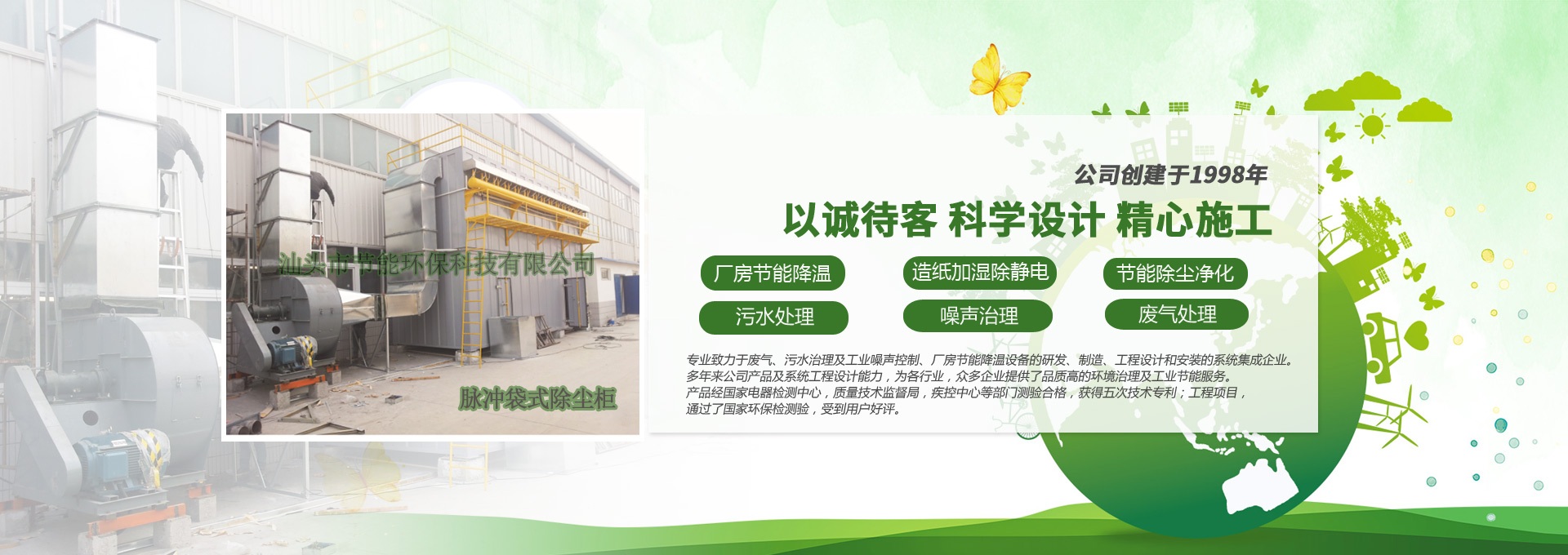 汕頭市節(jié)能環(huán)保科技有限公司創(chuàng)建于1998年,是一家專業(yè)致力于廢氣、污水、粉塵、噪聲治理,廠房節(jié)能降溫設備的研發(fā)、制造、工程設計和安裝的系統(tǒng)集成企業(yè)。多年來公司產品及系統(tǒng)工程設計能力,為各行業(yè),眾多企業(yè)提供了品質高的環(huán)境治理及工業(yè)節(jié)能服務。產品經(jīng)國家電器檢測中心,質量技術監(jiān)督局,疾控中心等部門測驗合格,獲得五次技術專利;工程項目通過了國家環(huán)保檢驗檢測,受到用戶好評。